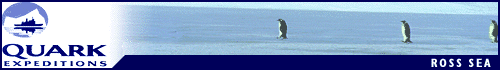 ROSS ICE SHELF Virtually filling what would otherwise be a gigantic bay or inlet, the Ross Ice Shelf is approximately the size of France. We plan to begin our exploration of this natural phenomenon with a cruise along a part of the 110-mile face and admire the immense tabular icebergs that are calved from this massive extension of the polar ice cap. Weather and time permitting, we hope to land by helicopter on top of the 100-foot-high ice barrier.
