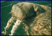 South of Nordaustlandet is an impressive floating ice shelf essentially a seaborne extension of the slow-moving inland icecap. This ice shelf stretches virtually unbroken for over 100 miles. At its end is Kvitoya, or "white island." It was here that Andre and his ill-fated companions erected their last camp after their balloon came down in 1897. Their remains were not found until 1930 and a small monument now marks the spot
